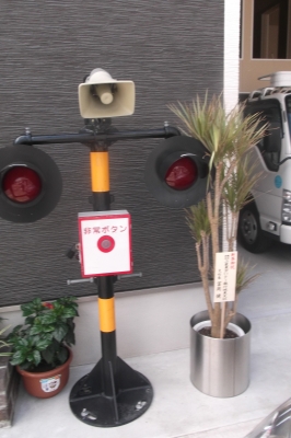 この家の顔とも言うべき踏切警報機の横に置かれていました。