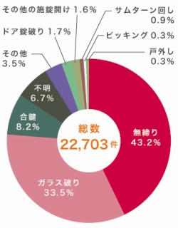 2011年の一戸建て住宅への侵入手段(2012年警察庁調べ)