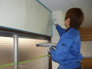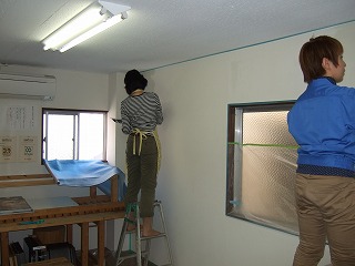 本日、塗壁教室の下地を設計部の北山さんと一緒に塗りました。