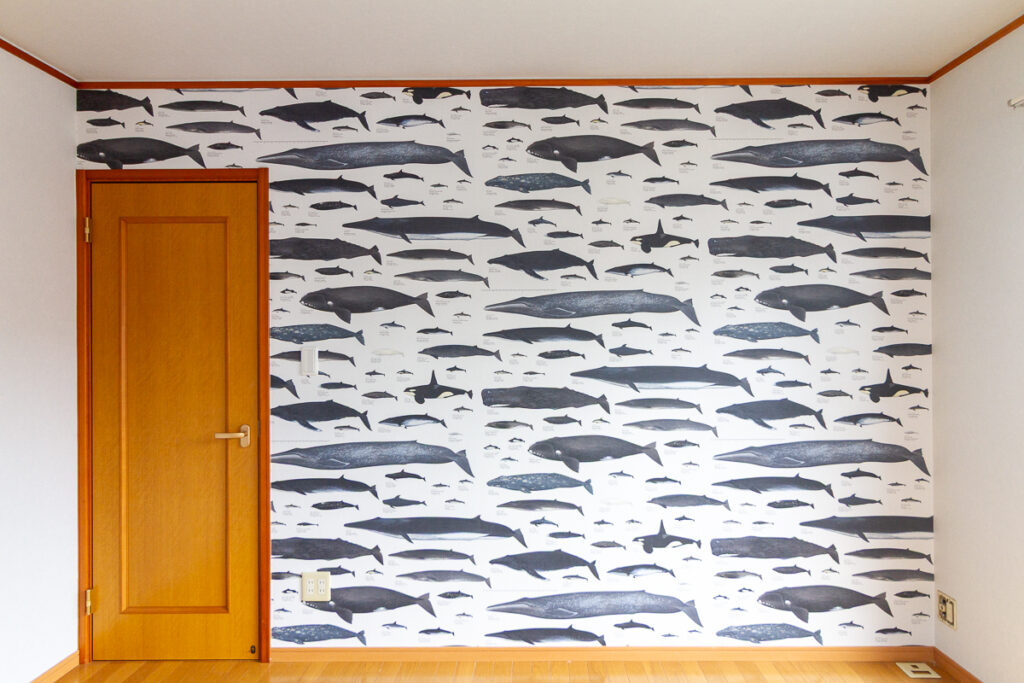 Hさまこだわりのウイリアムモリスのクロス。緑色のクロスと調和しています。