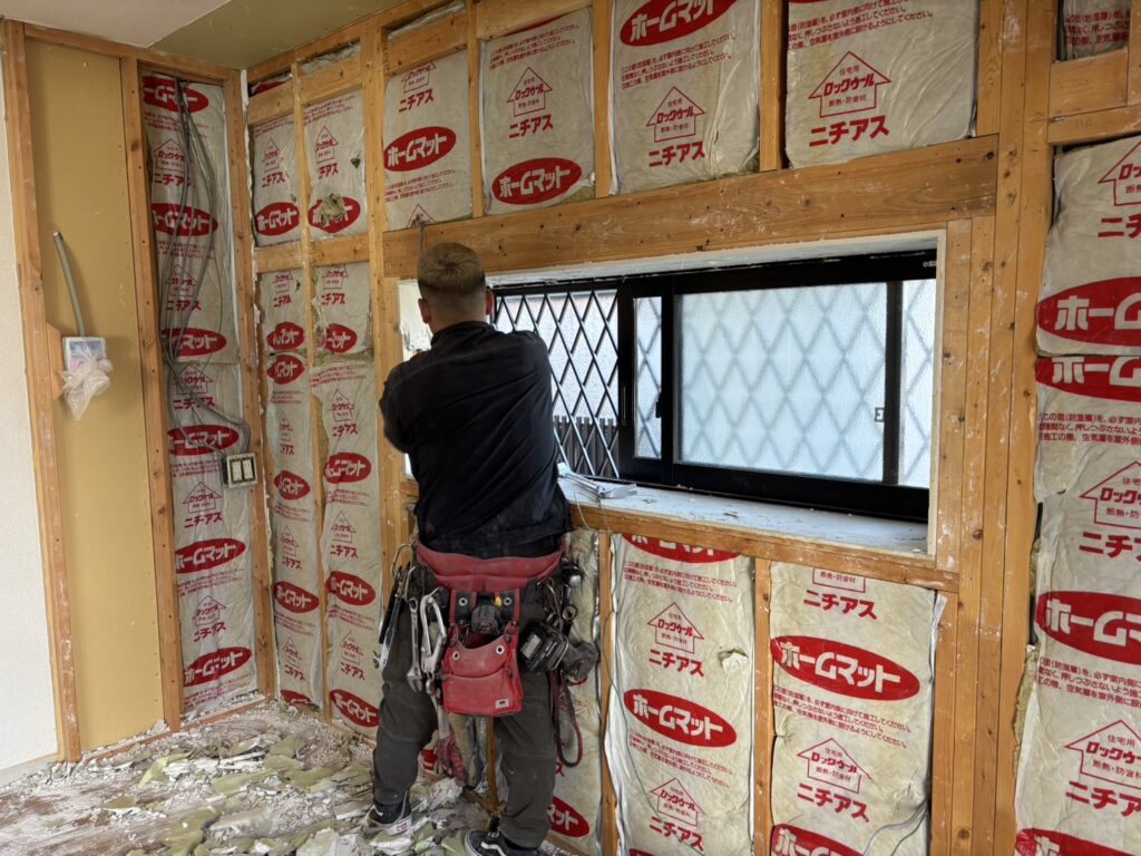 キッチンの外壁を撤去した様子。断熱材がしっかり施工されていました。